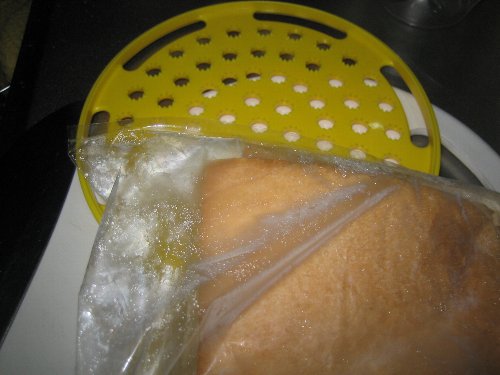 塩コショウ・小麦粉・卵 みんな混ぜて・・しかも・・袋に入れて・・そして・・いらないの・・捨てて・・パン粉入れて・・ハイ・・ジュ~です・・