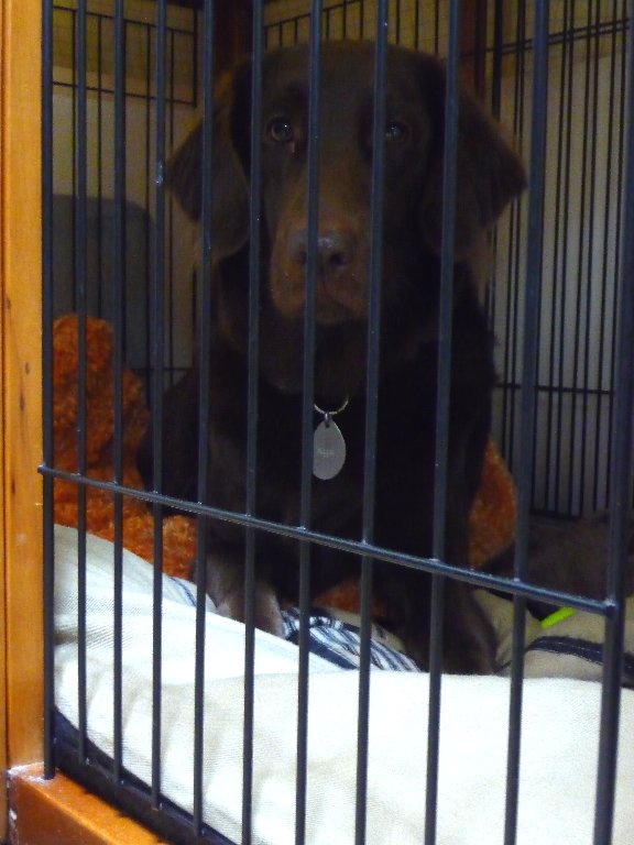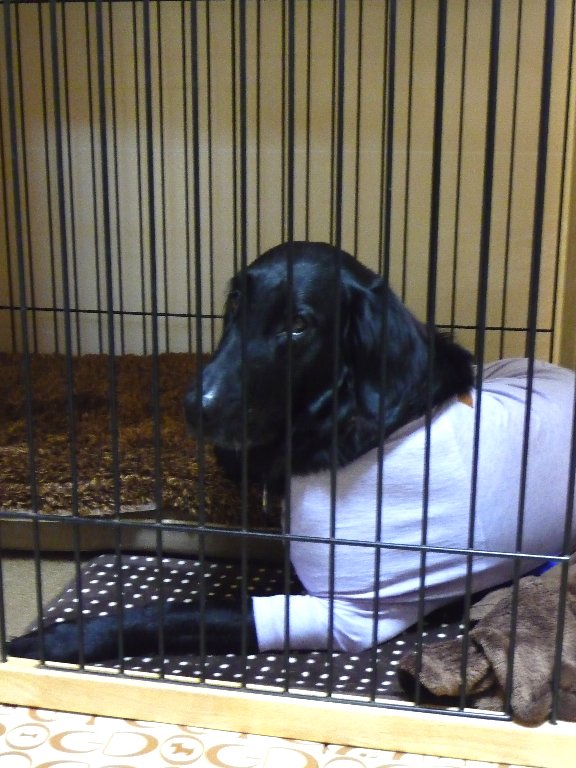 雨の日のお散歩は合羽を着るのが嫌で一人お部屋でお留守番の多いカヤ、でもしばらくはそれはまずいから行かないならケージに入れてかなきゃ!