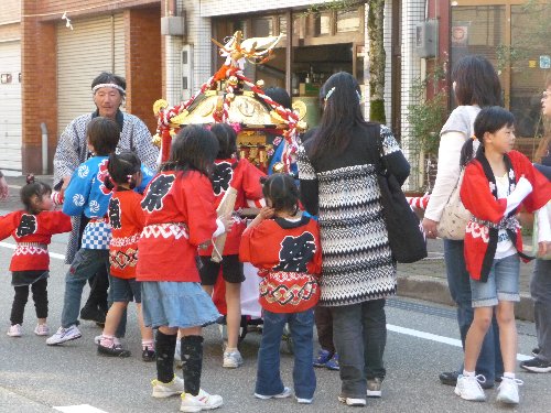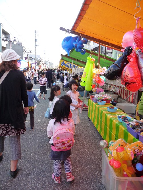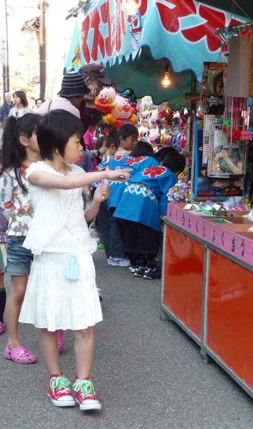 さて勢ぞろいした曳山が町を練り歩きに行ったんで、お子ちゃまたちおまちかねのお祭りめぐり?!