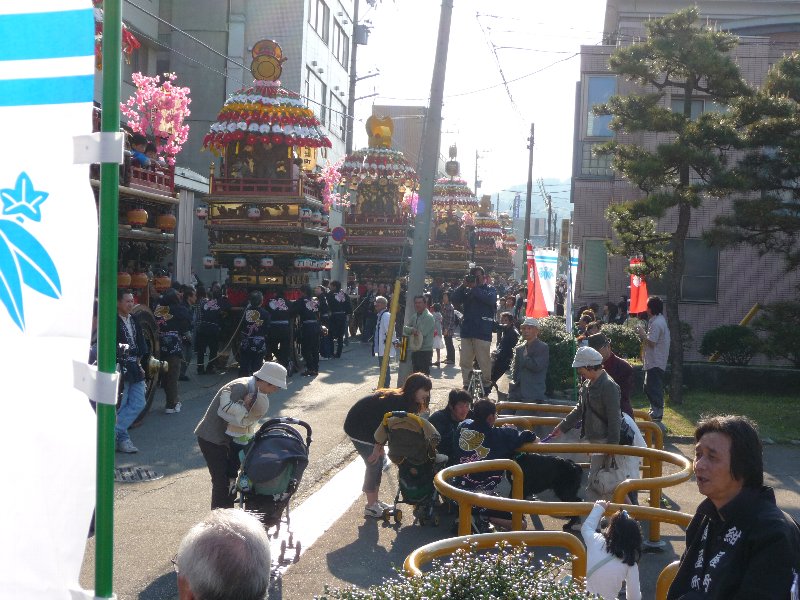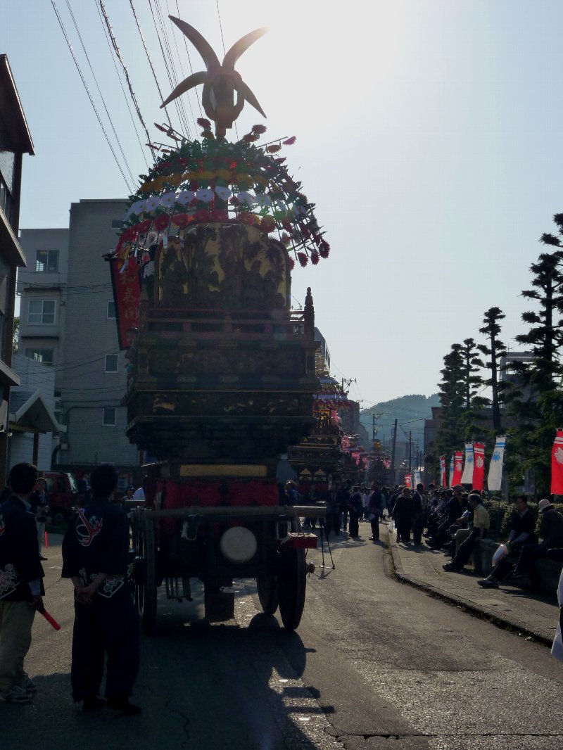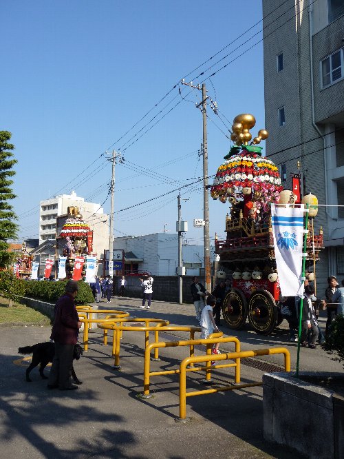 そんなわけでお子ちゃま達の気が済んだみたいなので、練り歩いてる曳山がまた集合する市役所前に移動しました。