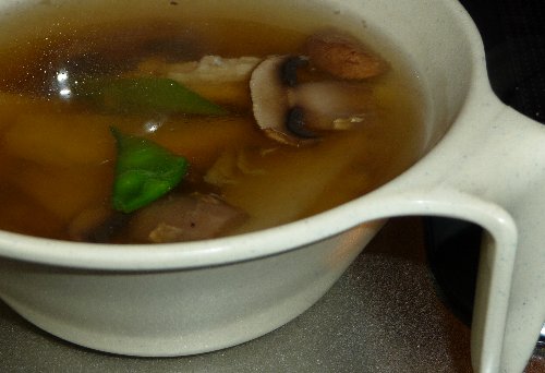 汁物は竹の子とマッシュルームと絹さやのコンソメスープ(^(00)^)v