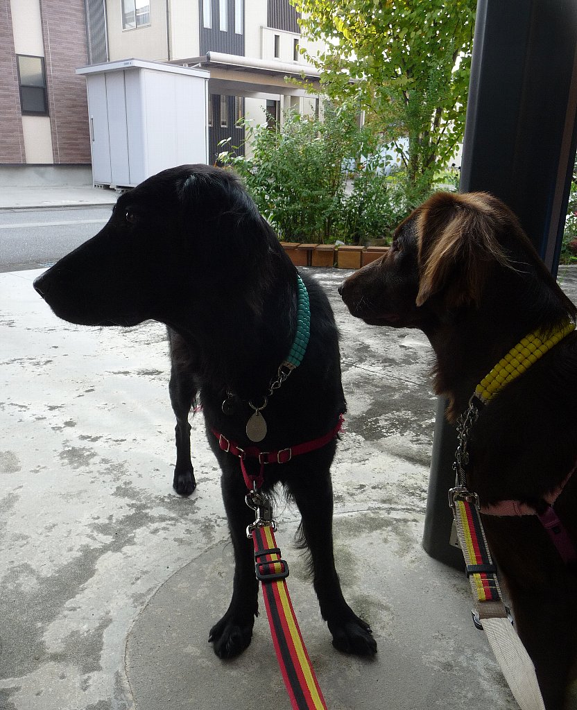 気がつくと11時半過ぎてて凜カヤずっとケージで大人しく・・・おしっこ我慢してる?!慌てて散歩に。