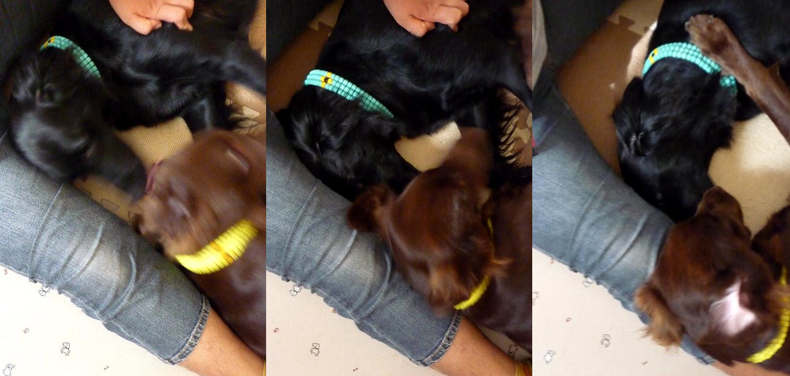 そんな凜カヤ母の足の間を取り合うので頑張って大きく開けて二人入れてやった、