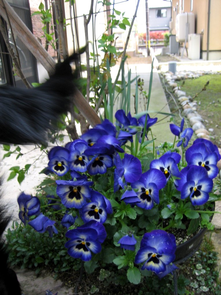 んで、玄関前の鉢に植えたっけ?ってのを見つけておさしん撮ろうとしてんのに、カメラと鉢の間に割り込んではかまってアピールの誰かさん(--)