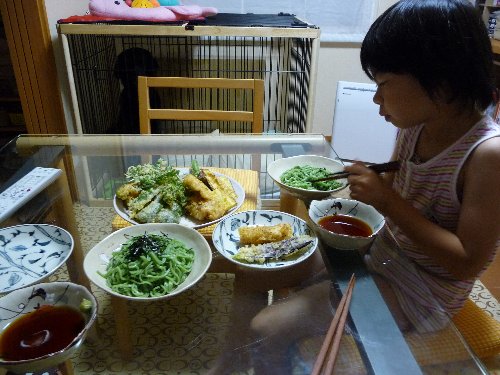 夕飯はタラを焼いてプチトマとでソースを作ってなんかあっさり系のパスタ作ってと思ってたんだけど姉ちゃんがおそばのほうがいいってんで急遽そばと天ぷらに。
