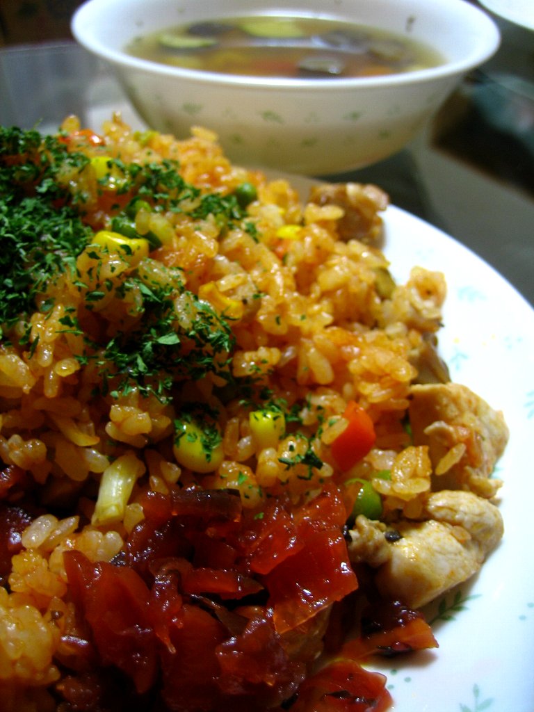 結局、給食が少なかったからおなかペコペコなのぉ~と言う姉ちゃん、早く食べたい!!ってことですぐ出来るチキンライス(^^;)