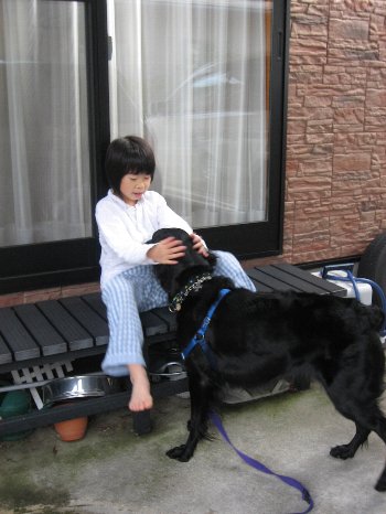 うちへ戻ると姉ちゃんがお出迎えしてくれました、パジャマのままで(--)しかも上下違うの着てるし・・・。