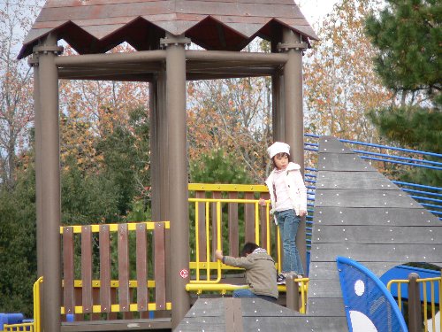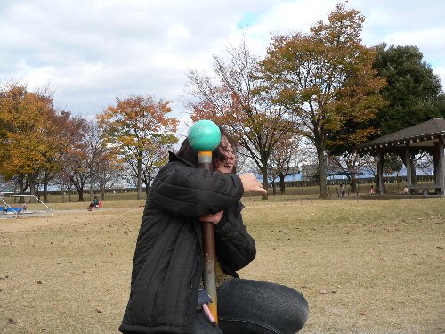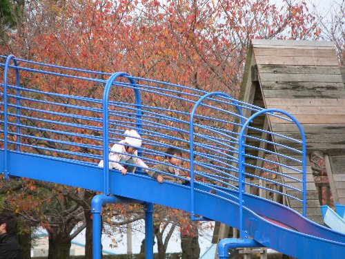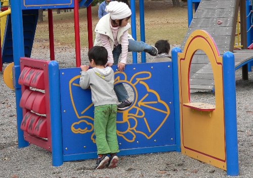 んで遊具のところへ着いて姉ちゃんが遊んでるのを見て凛パパに凜を預けてchababaも一緒になって遊んでみたら・・・