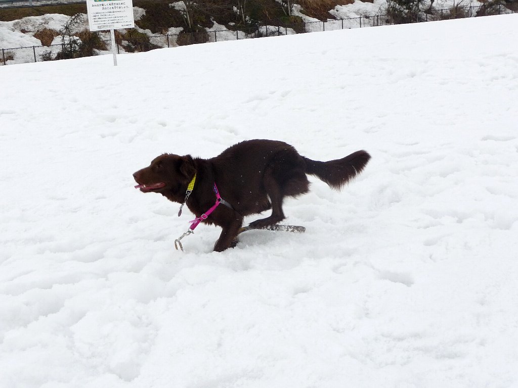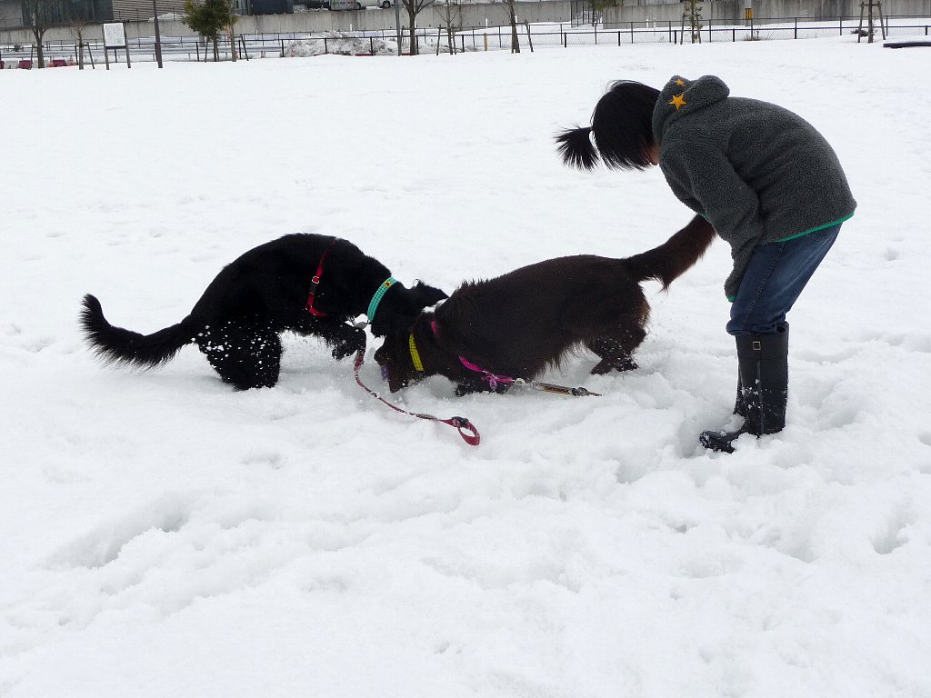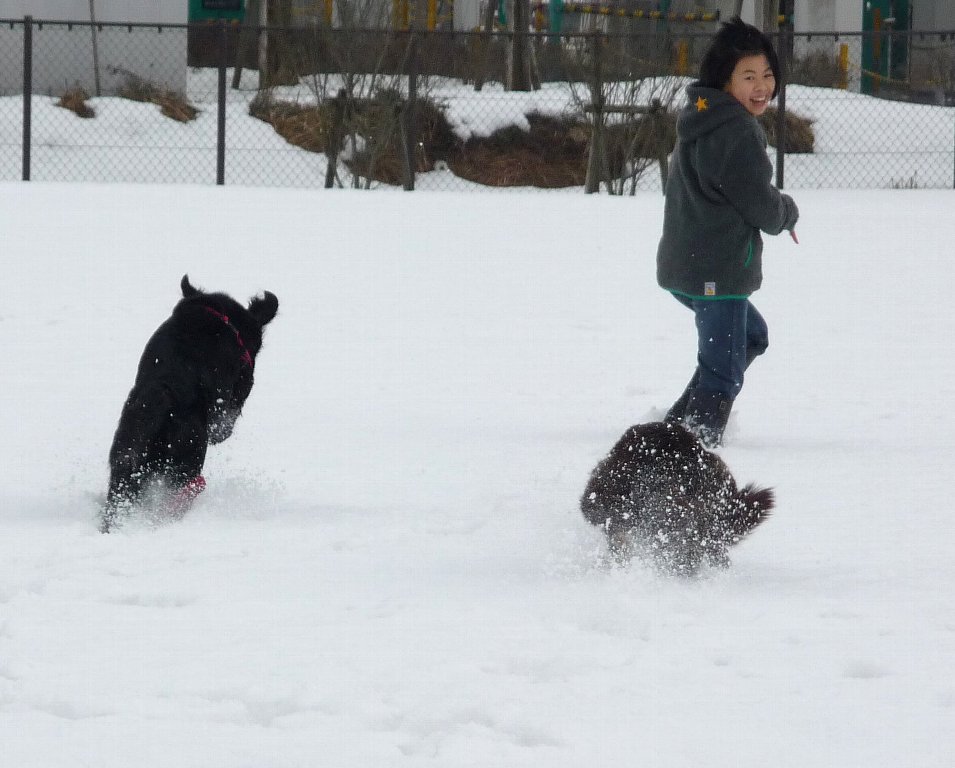 もったいない公園、雪の量が前回に比べてぐぐっと減ってたけど走り回って遊ぶのにはちょうどいい感じ。