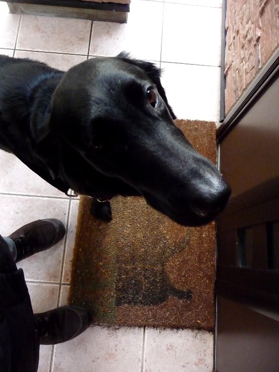 あらら、玄関マット、フラットっぽい(黒ラブ?)黒犬さんが消えてきてるよぉ!