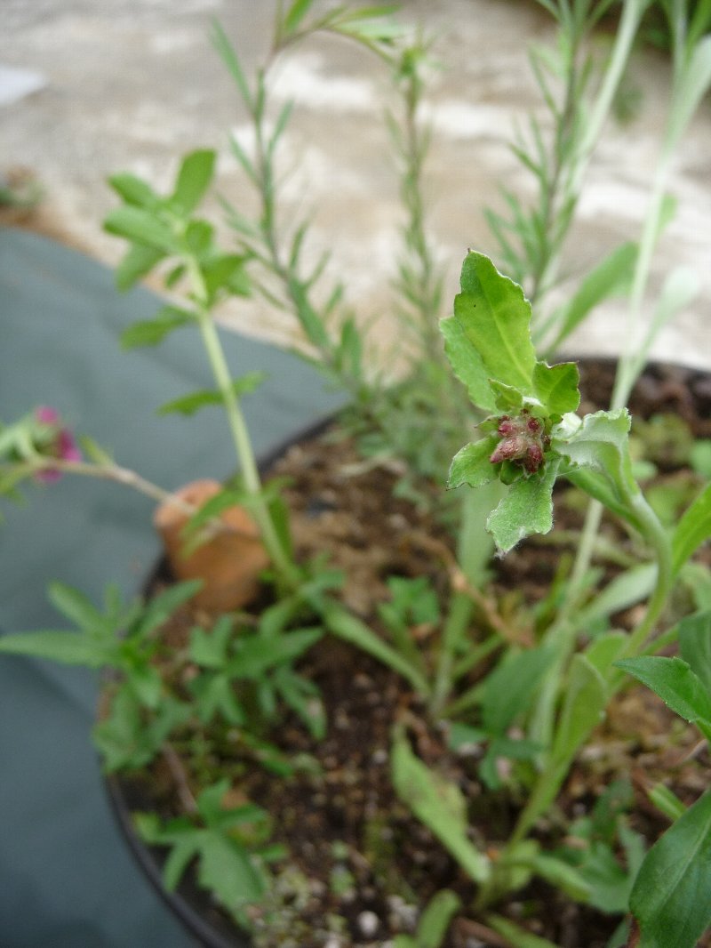 向かって左下のフィーバーフューはアブラムシが嫌がるんですってよ、ほんと?!