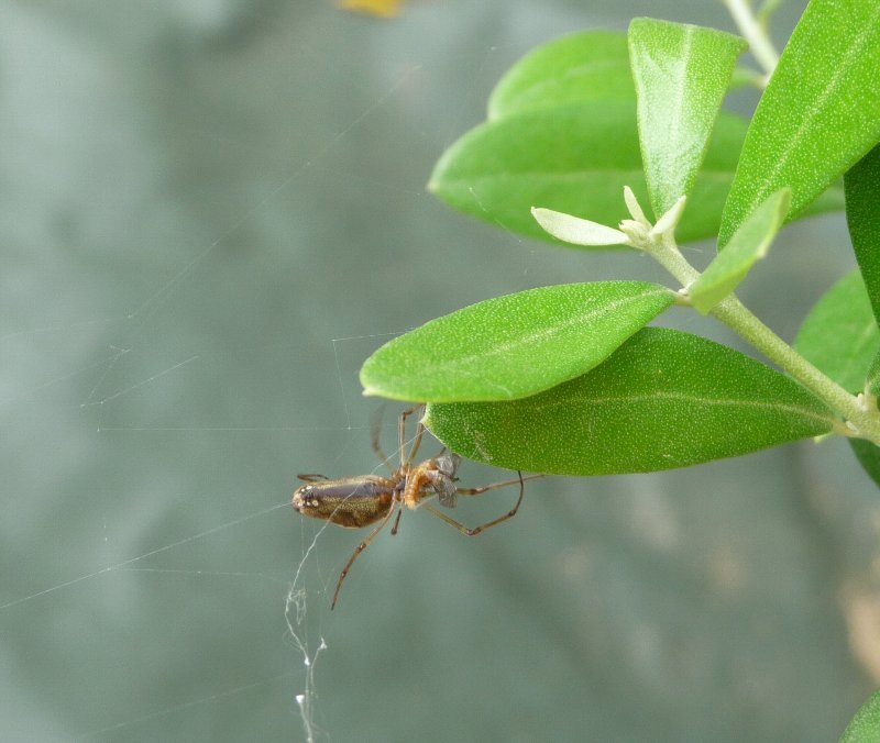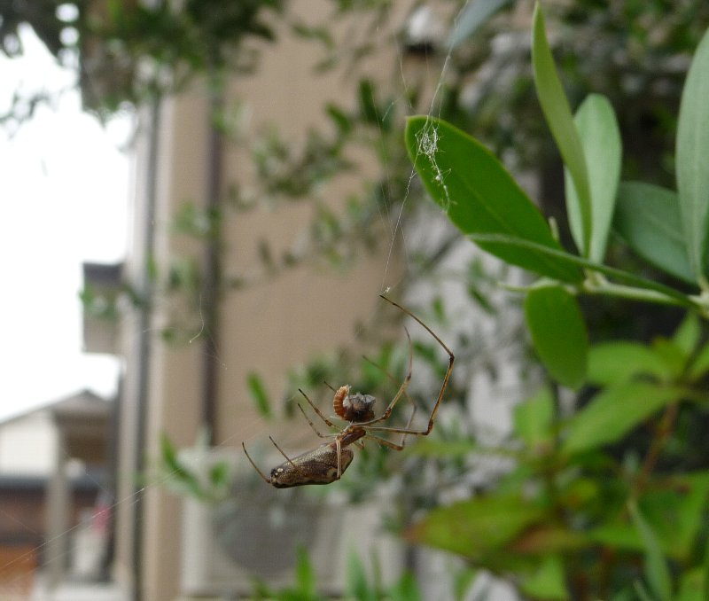 てんとう虫さんといい、蜘蛛さんといいほんと敏感、カメラ向けただけで葉や花の裏に隠れようとするのね。