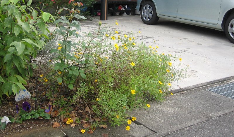 なんか抜いちゃうのしのびなくて・・・、秋にはピンクの一重のかわいいシュウメイ菊が咲くからねぇ~。
