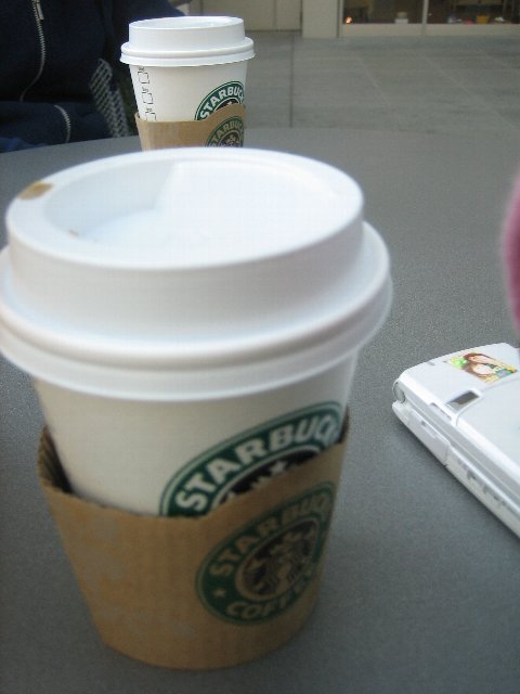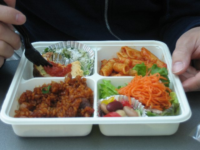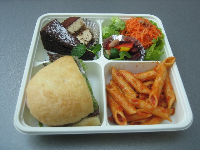 で、その後はお昼どうしよっかと街をうろうろしてたんだけど、結局グランドプラザに置いてあるテーブルで大和で買ったイタリアン弁当とコーヒーでランチ♪