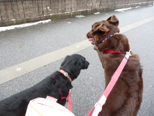 道によってはまったく雪の残ってないとこも、で、カヤちゃん歩きながら凜に・・・
