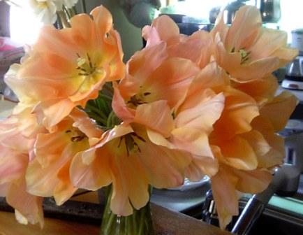 この間切って花瓶に挿したちゅ~りっぷ、これでもかぁ!!ってくらい頑張って開いてます。