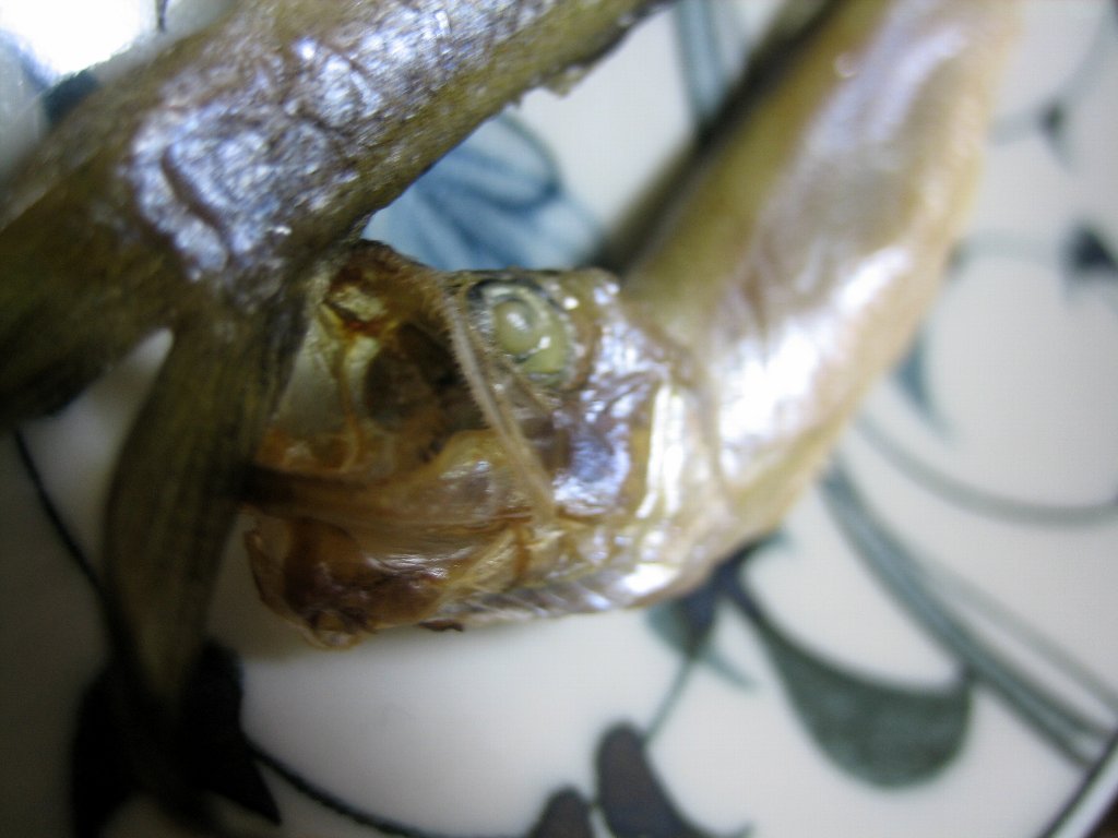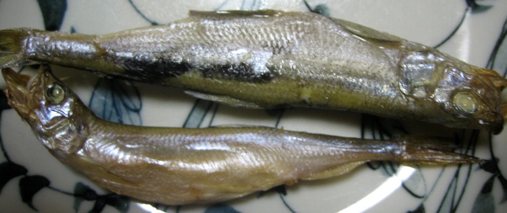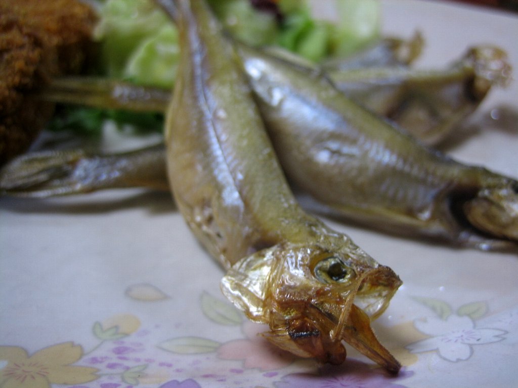 んで、ぜんまいの水煮で縛って、あとは買ってきたイワシかつとおとつい姉ちゃんを預かってもらった友達にもらった国産シシャモ!