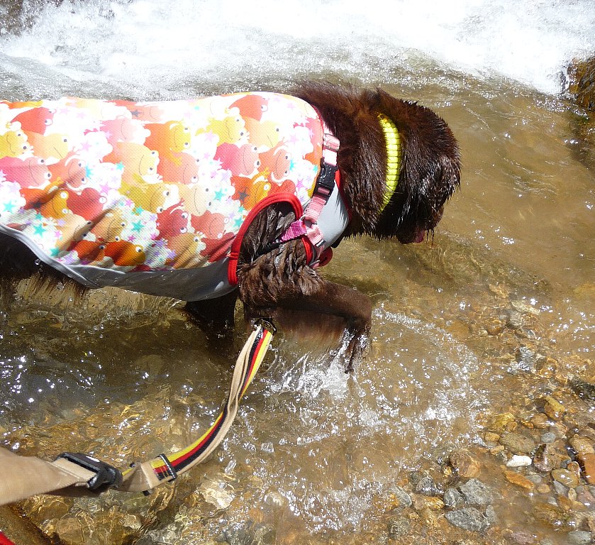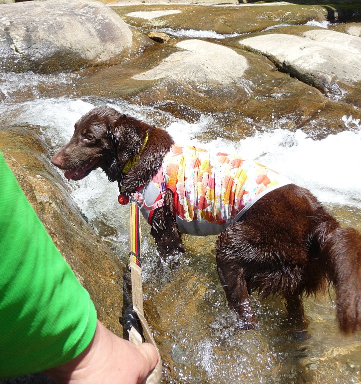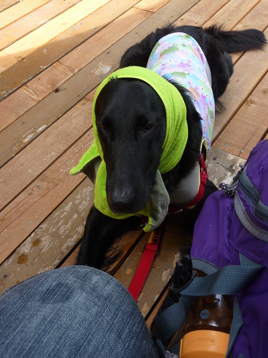 体があっちっちな凜は何度も浸かるのだけど冷たくって座ってじっとできないらしく伏せようとしてはすぐに立ち上がり・・・本当はしばらく浸かりたかったみたい。