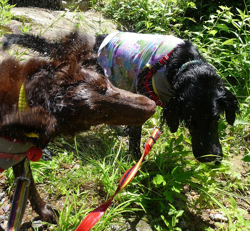 暑い、とにかく暑い・・・おうちでんちをしてきた凜カヤなのにハクチンにあって興奮してまたもやダブルでんち、で、それを取ろうとしゃがんだらもわわぁ~んと熱気が・・・ワンズはこんな暑い場所を歩いているの?!