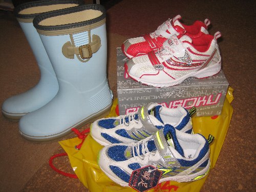 んで、濡れたときの替えも必要なんでスニーカー2足と長靴1足、とりあえずはこれでいいでしょ。