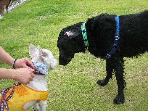 そのうち店内にいらしたホワイトテリアのカイト君とオーナーさんが出たらっしゃいました。