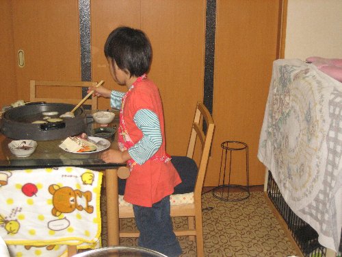 油が飛ぶので凜さん防御(^m^;)が下からのぞいてるし・・・。