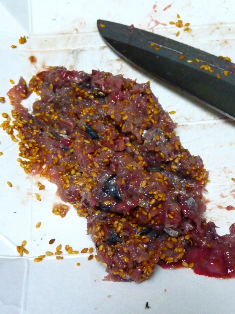 でも8匹も入っていて2匹づつあればいいなと思って残った2匹は叩いてミンチにしてつみれ汁に。