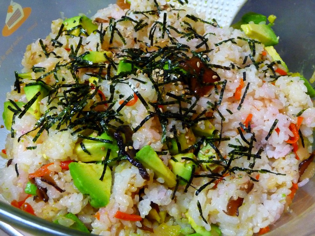 それから冷凍してあった残りごはんをチンしてすし太郎と混ぜて散らし寿司。