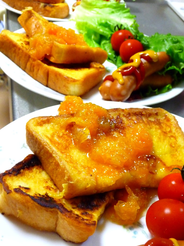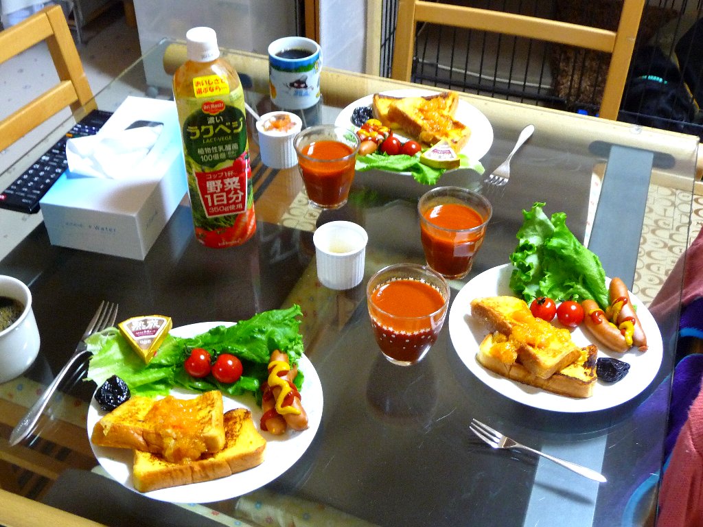 でもそんなどんよりな日に姉ちゃんが家庭科の教科書で見た(教科書は学校に置いてきてるんだけど)フレンチトーストを作る!って事で朝ごはんは姉ちゃん作♪