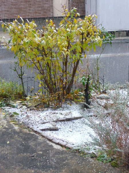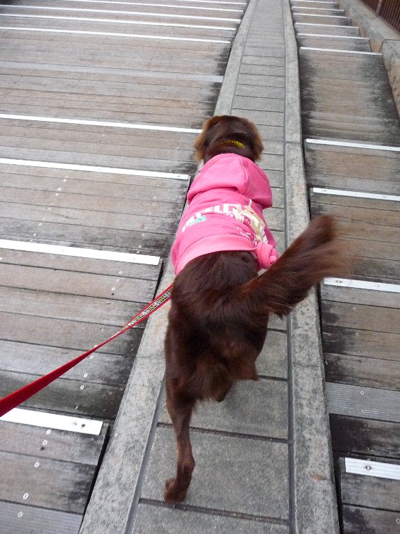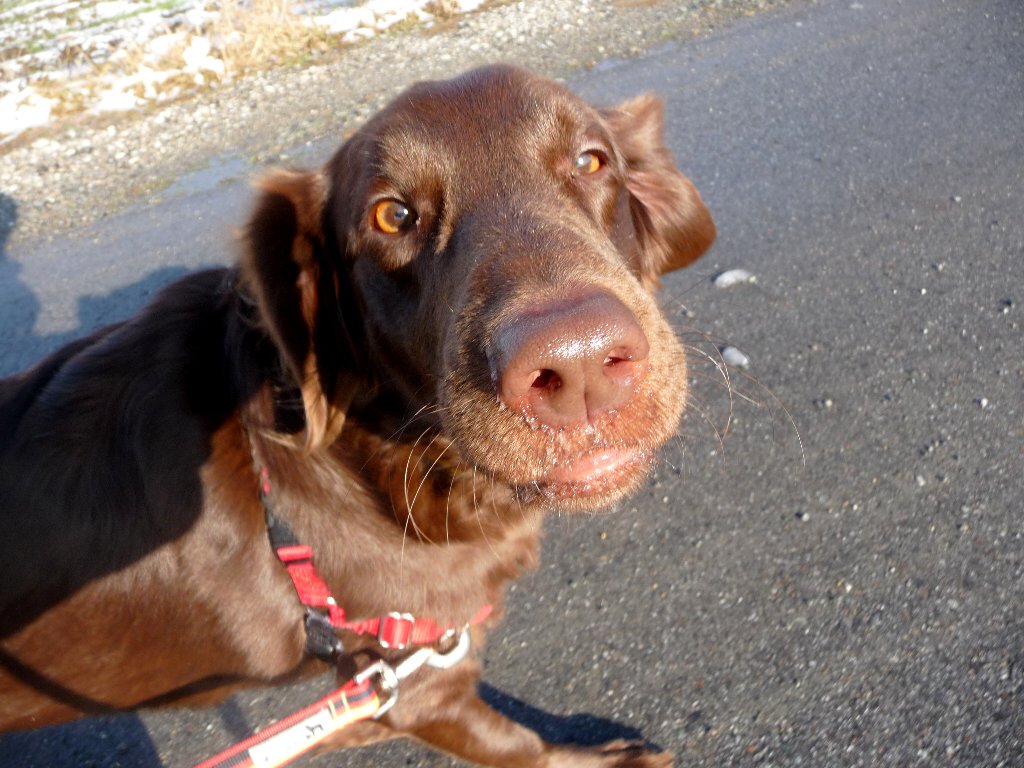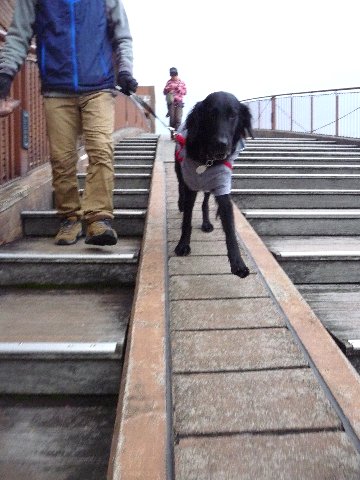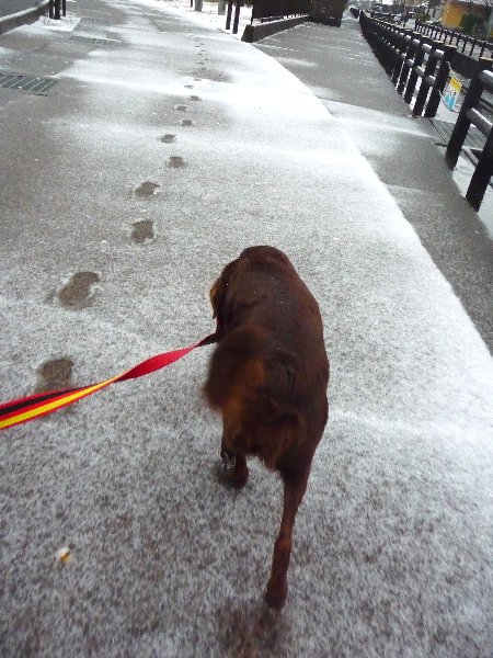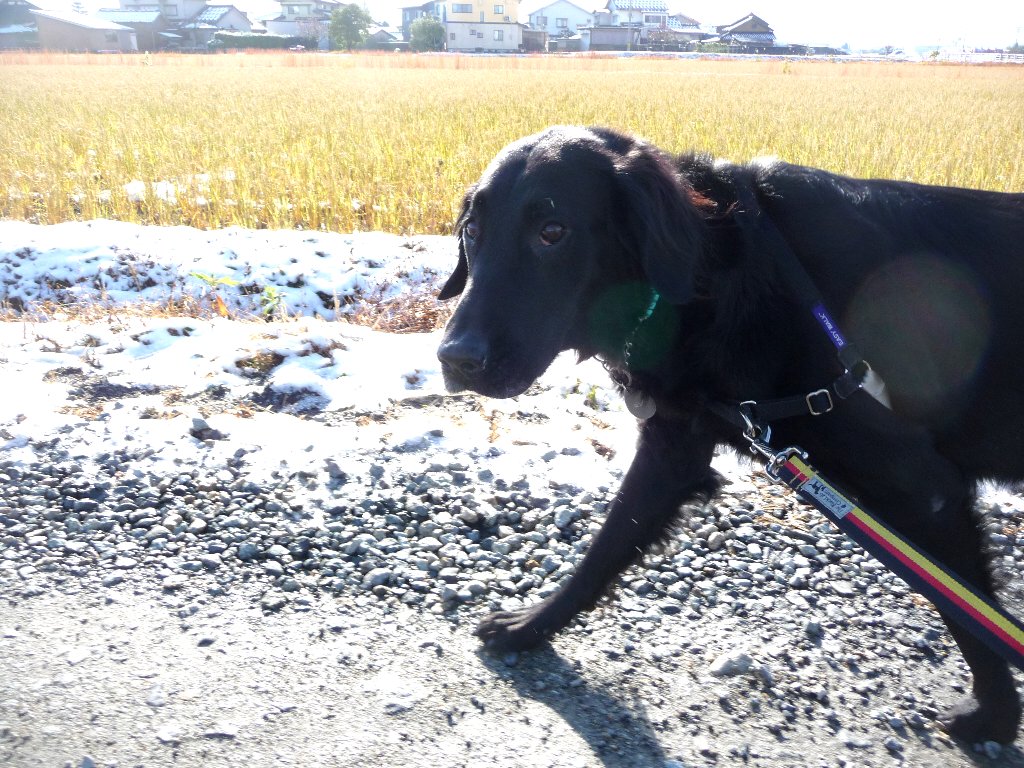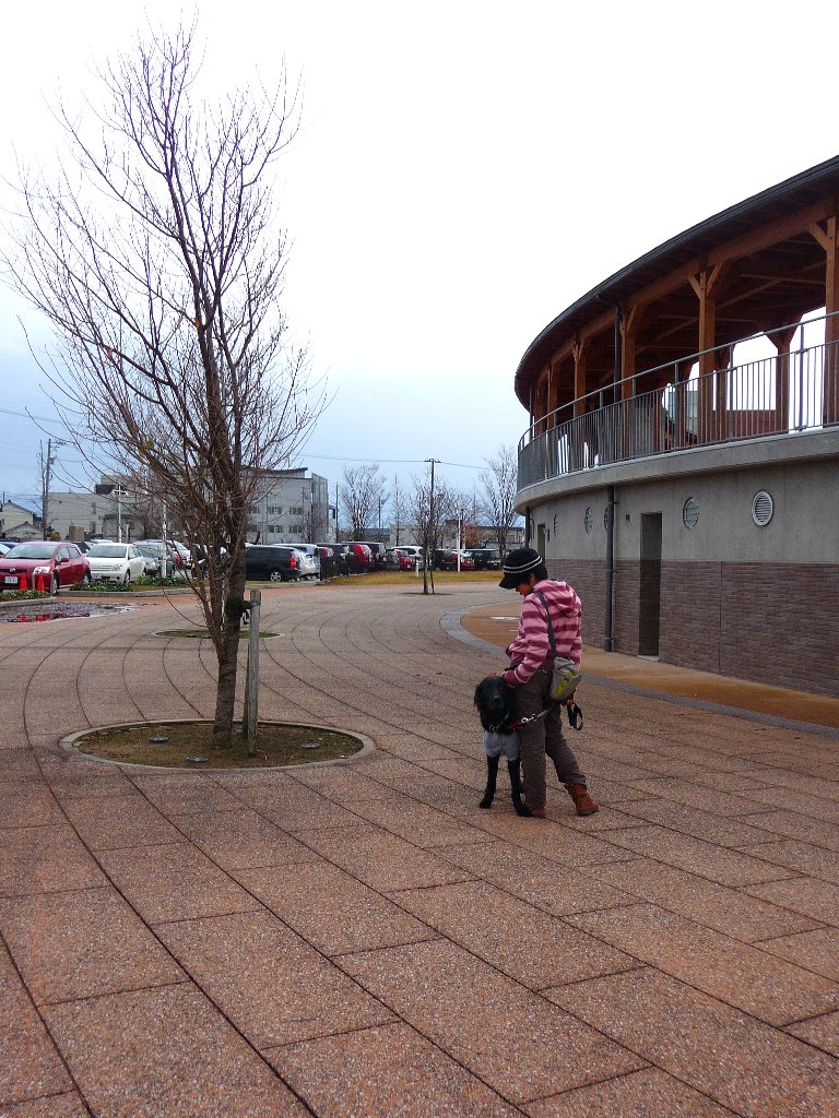 美味しくってルンルンになったのは母だけで、まだまだびちょびちょの雪?が降ってる中のお散歩はテンションの低いお二人さん。