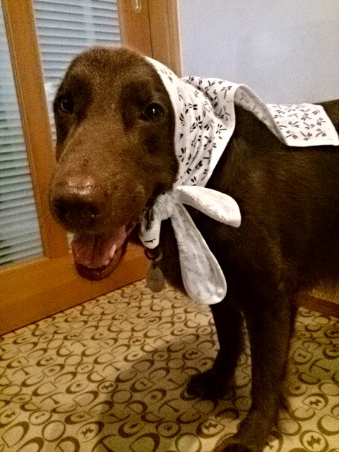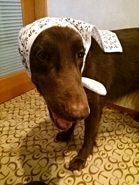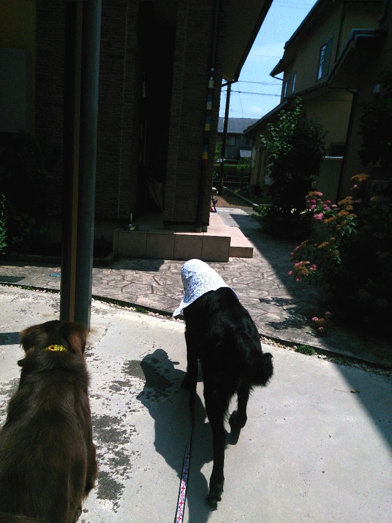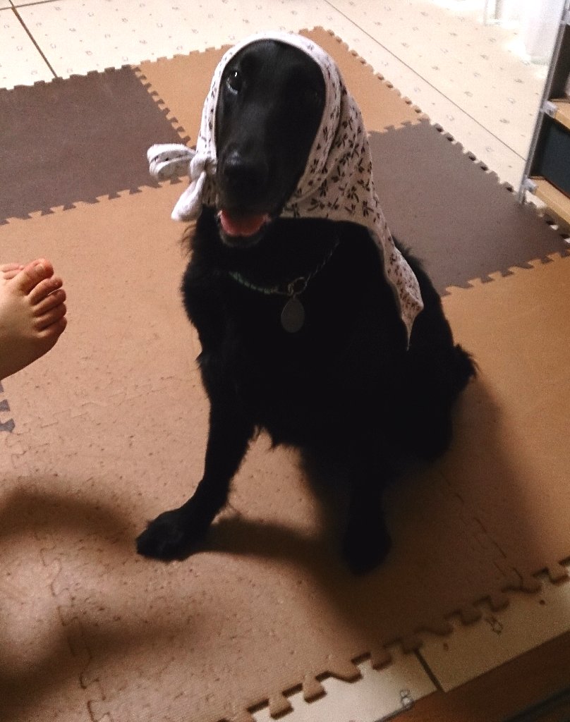 カヤに凜の日よけタオルしてみたら・・・なんだかなぁ~(^、^;)