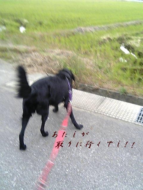 凛はいつものもってこい遊びのごとく、うれしそうに取りに行こうと地団太踏んでます。