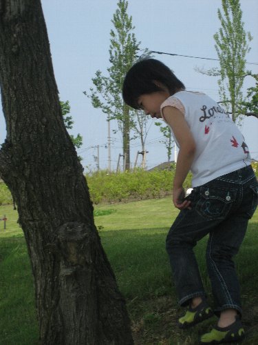 このおっきな木の下の芝生んとこ、とっても涼しいよぉ~。
