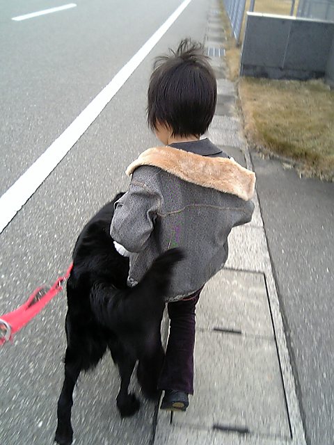 帰ってから遅めのお昼ご飯を済まして、今度の散歩は姉ちゃんも一緒です。