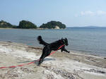 こちらのお嬢さん、ようやっと海の中のきれいな貝殻拾い開始(^皿^;)