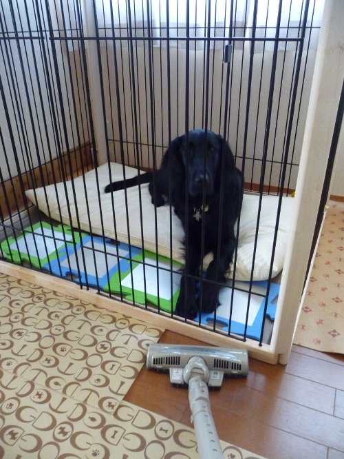 お散歩から帰ってお掃除してるときの凜はおりこうさん。