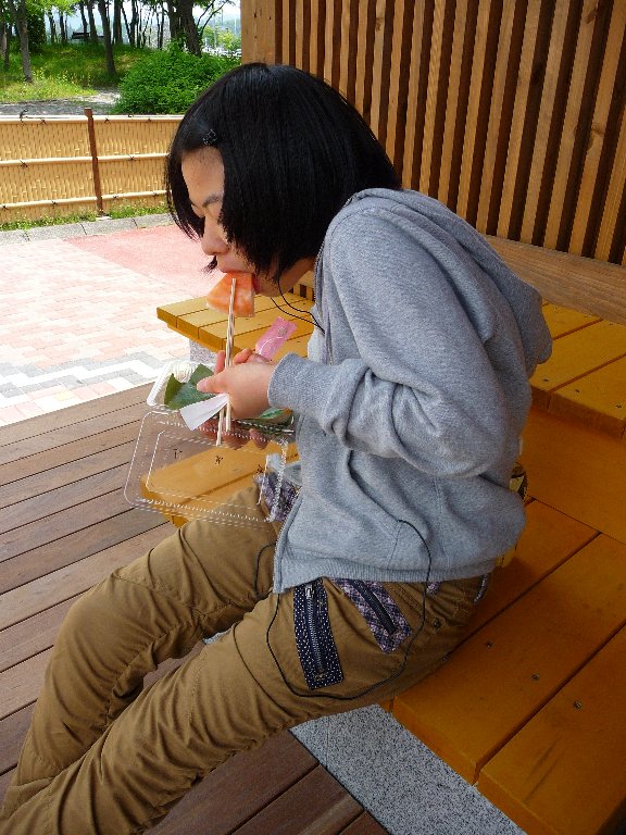 姉ちゃんが食べているのは・・・竹勘さんのマス寿司です。