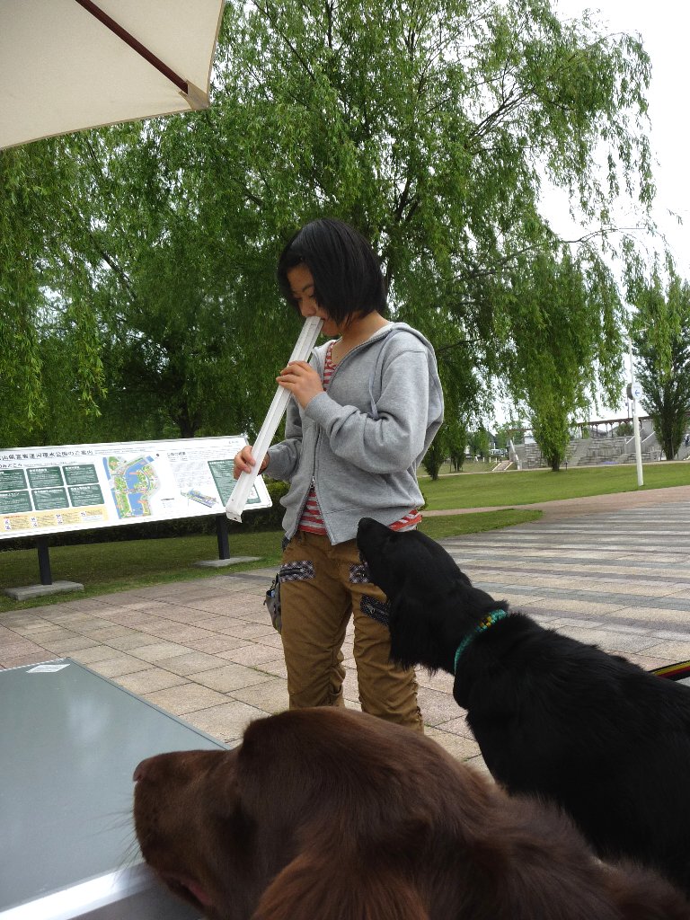 凜カヤワンちゃんとご挨拶もできてルンルン、でもでもどっちも小さなワンコで園内にはバニが2頭も居たのにどちらとも絡みなし(^へ^;)