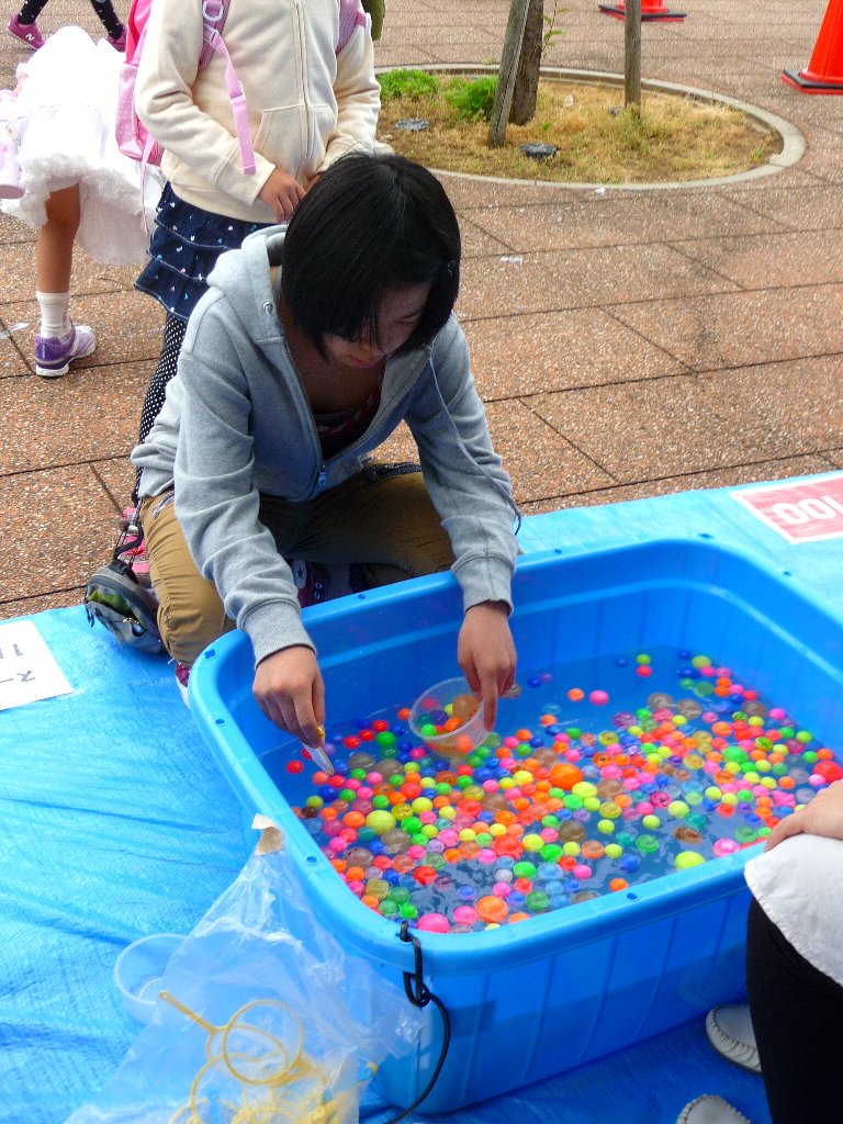 そしてぐるりと回って、公園に来てすぐにやった輪投げの横にあったスーパーボールすくい、中学生のしかも女子がしてるのはねえちゃんだけ?!