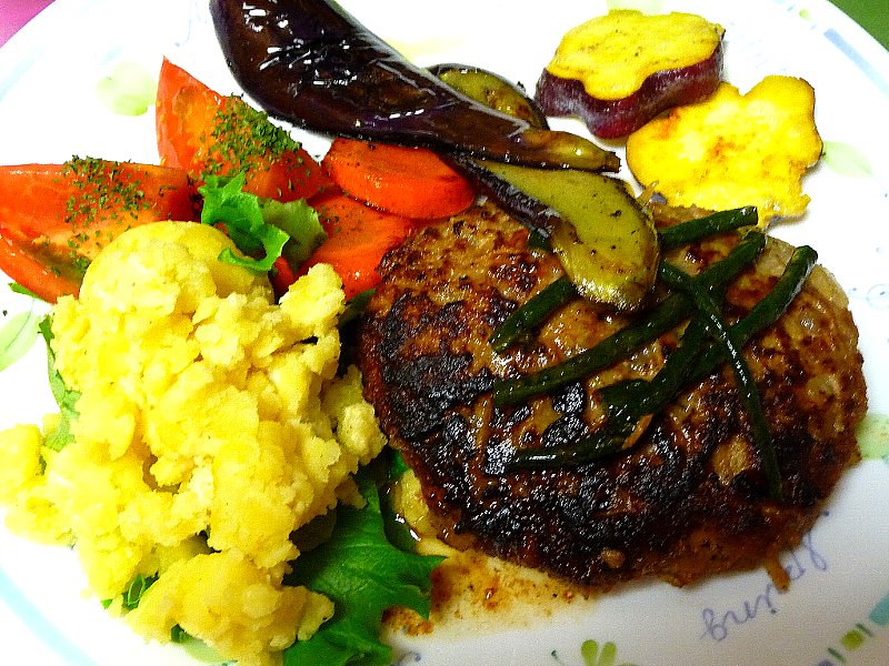 ニンの夕飯は今日は和風ハンバーグ定食よん♪