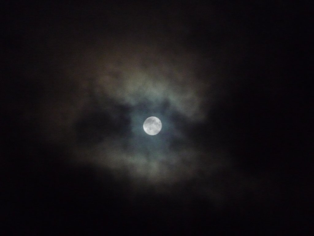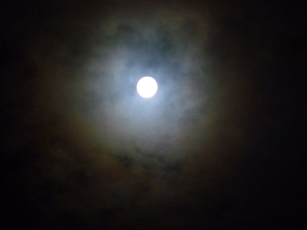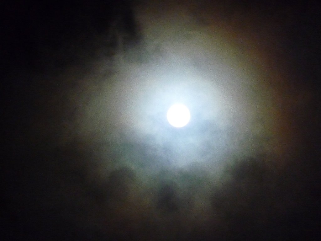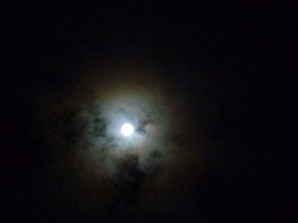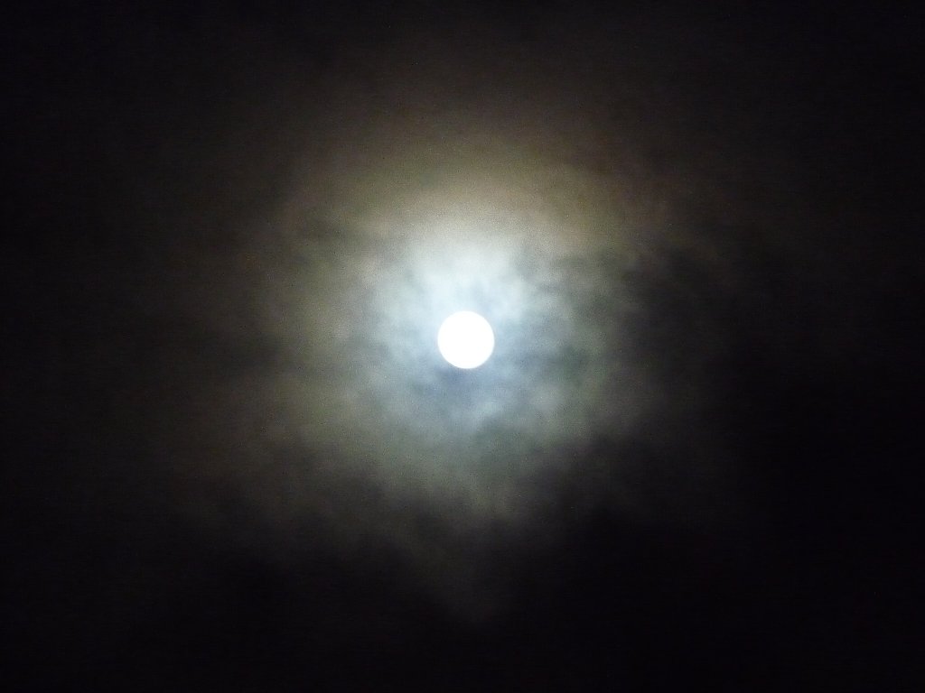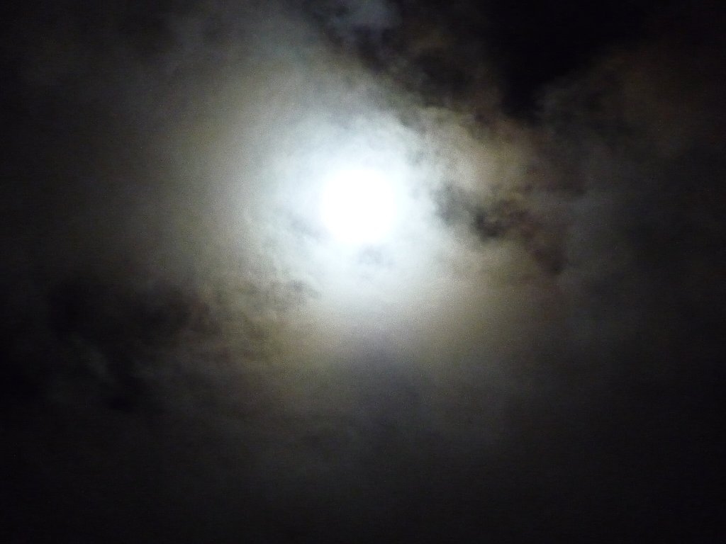 雲の流れが速くってお月さん隠れたり見えたり、完全に雲が無い状態になると明るすぎです。