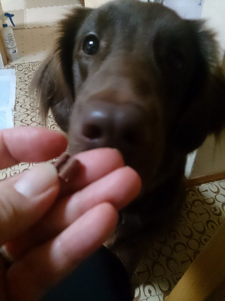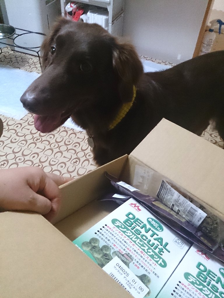 そう、お初のカヤのためだけのお荷物です、カヤちゃん大喜び小さな小さなトリーツなんだけどこれ3つに割って小さくしてやっても大喜び、しつけのやり直しに効果的ね(^^)b