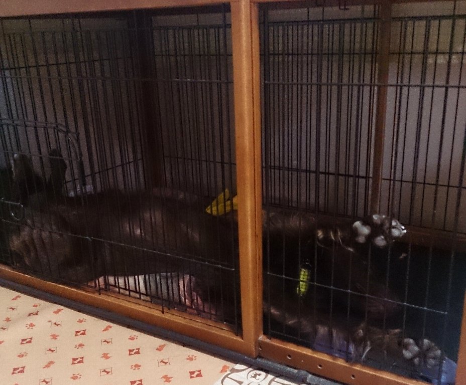 凜だと胃捻転が怖いからってごはん後は即ケージで休むだったんだけど・・・今は丈夫でも年とったらわかんないしやっぱごはん後はケージに・・・しなきゃなぁ~