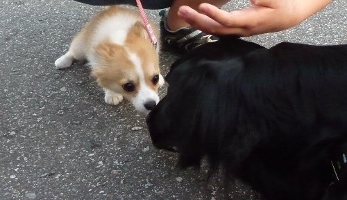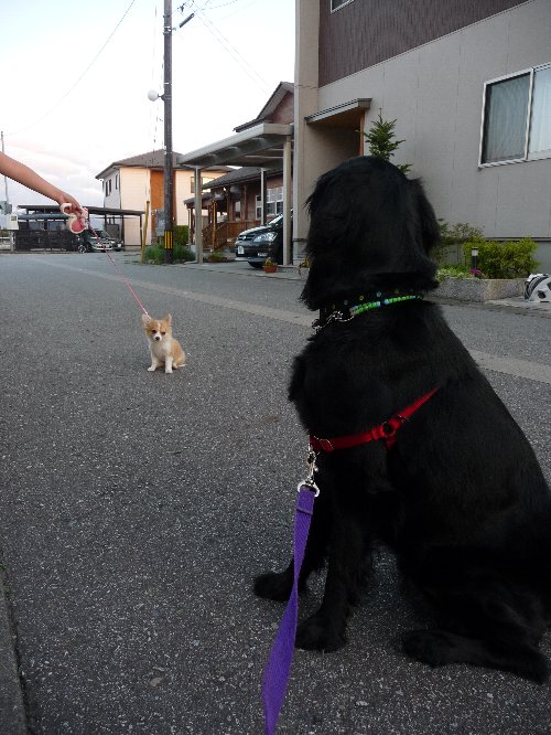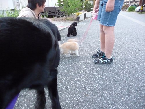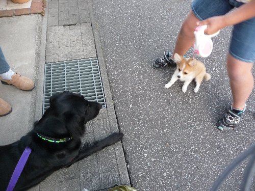 凜もクッキーはパピーだってわかってるようでいつものようにがんがん行かないし吠えもしない。