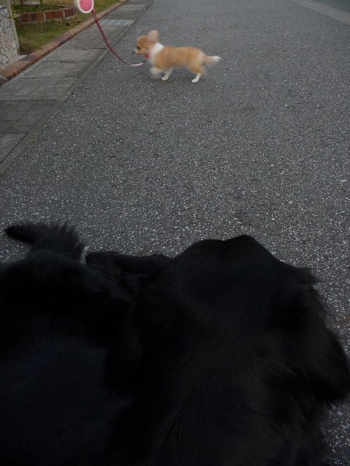 んでチャレンジしてる姉ちゃんを置いてchababaは凜のちっこ散歩。
