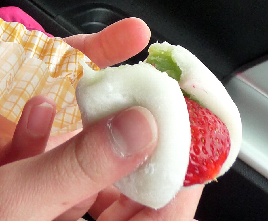 はとやさんのイチゴ大福、中がずんだ餡なの(^(00)^)ずんだ好きの人はお試しあれ、美味しいわよ。
