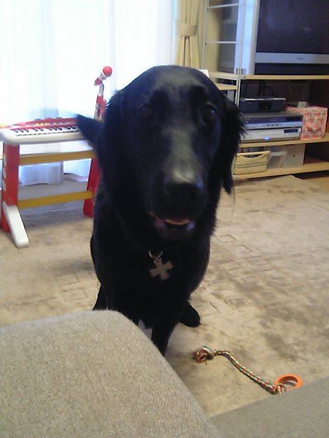 おうちに帰って、いつもならすぐハウスであさごはんなんだけど、あんまりにもお散歩短かったんで少しお部屋で遊びましょうか?