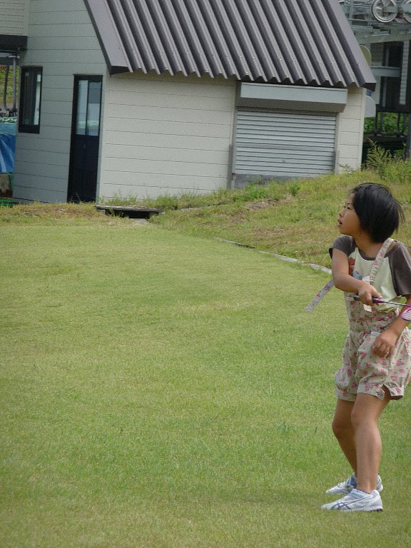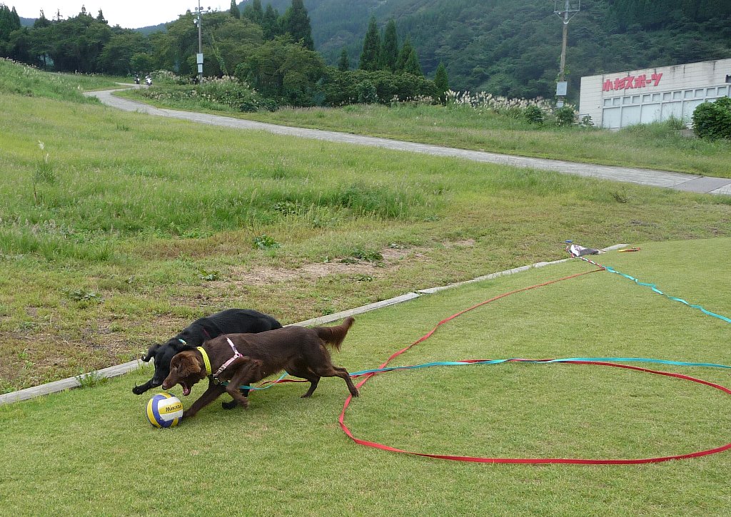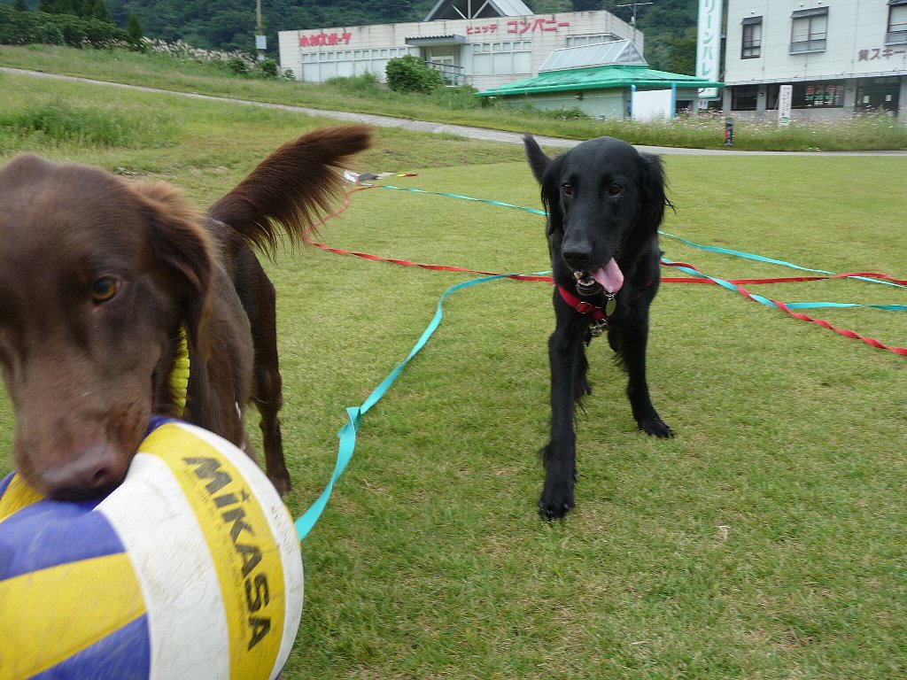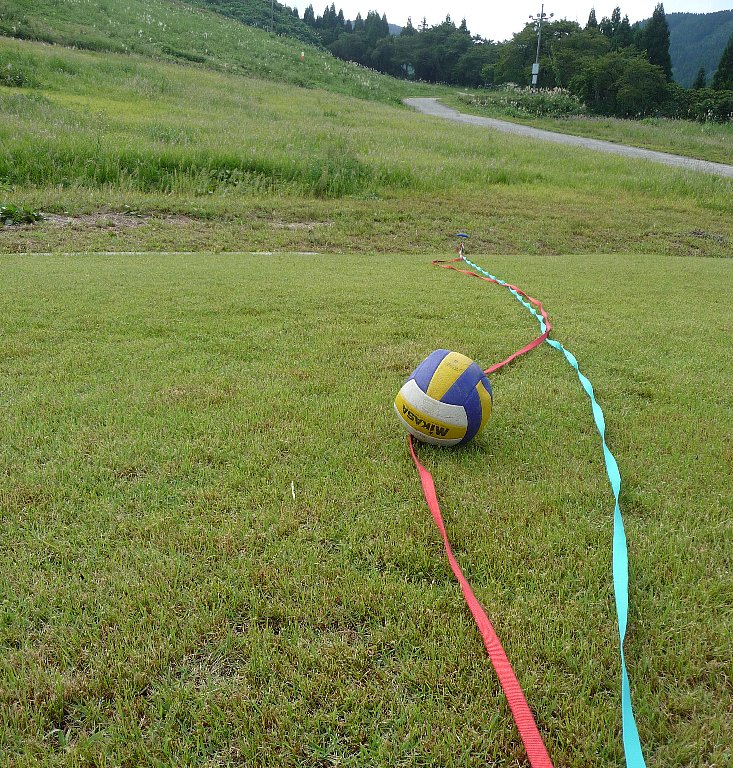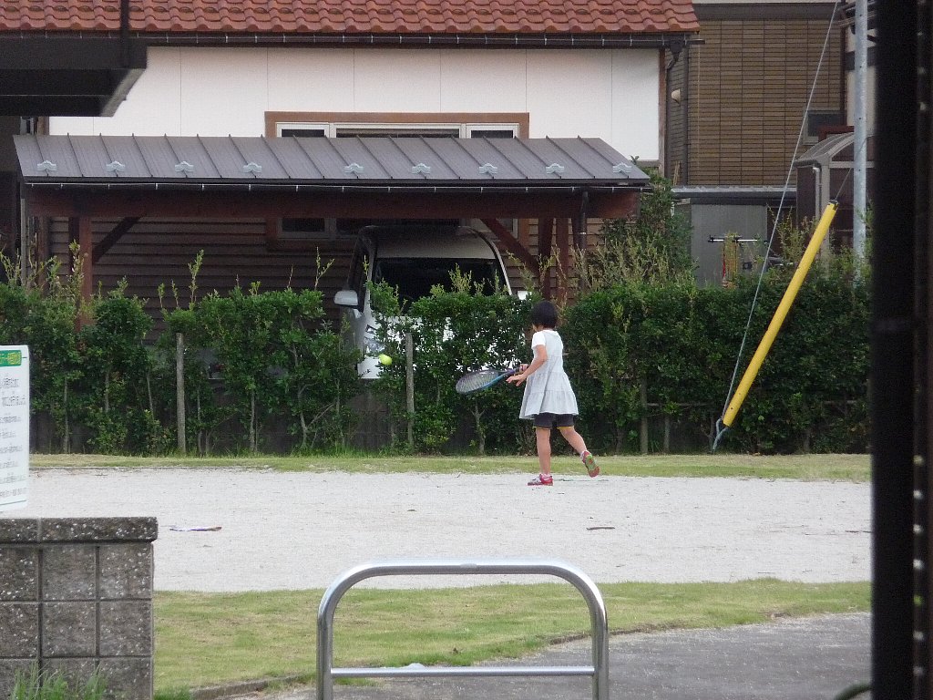 取り残されたボールがむなしい・・・↑後ろのほうに写ってるけど姉ちゃんと凜パパはバドミントンを、