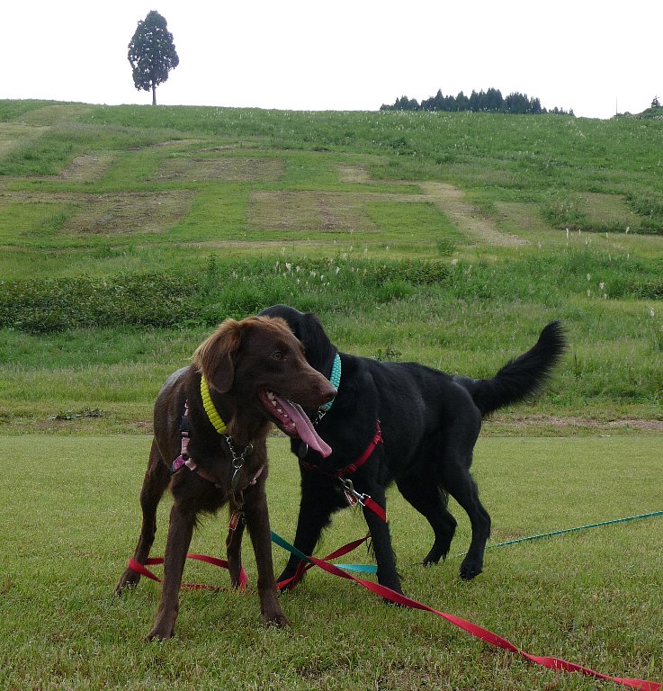 最初こそロングリードを楽しんであちこち散策していたお二人さん、