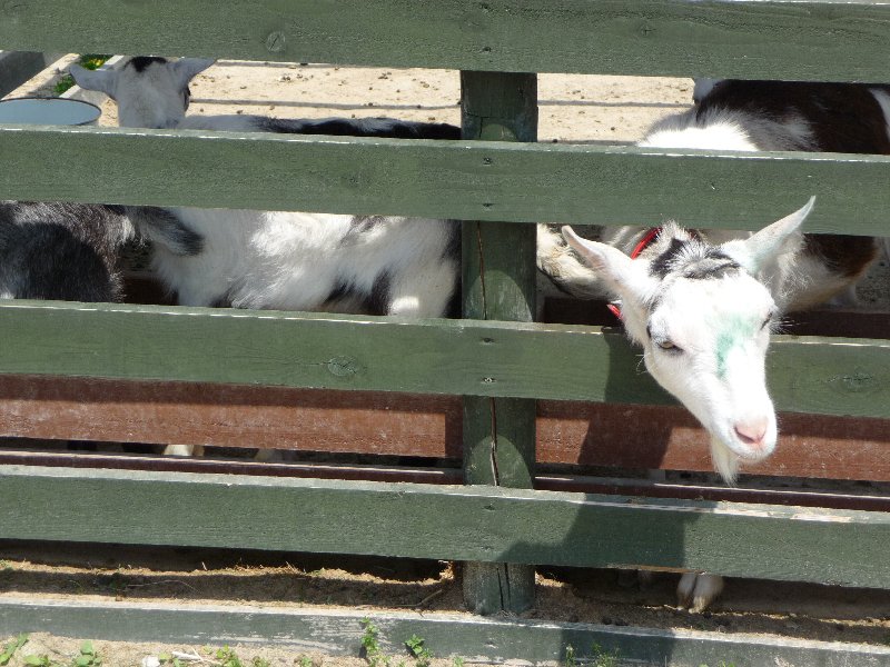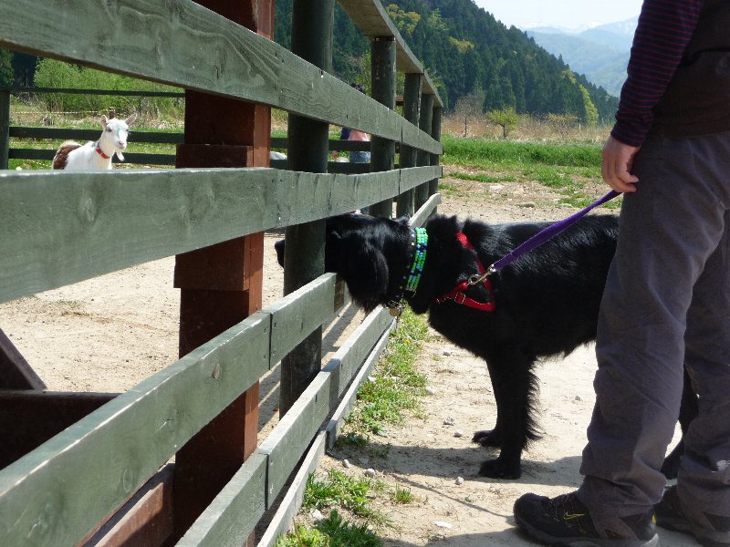おかしいのがこの山羊さん、黒い大きなやつにものすごく興味津々、わらわら集まってきてどっちが柵の中なんだか(^へ^;)